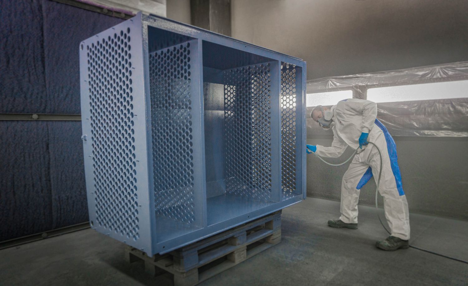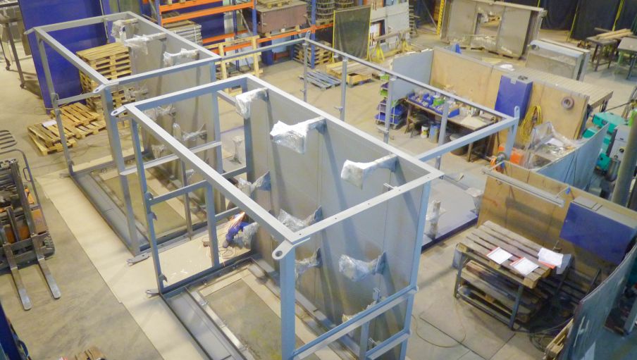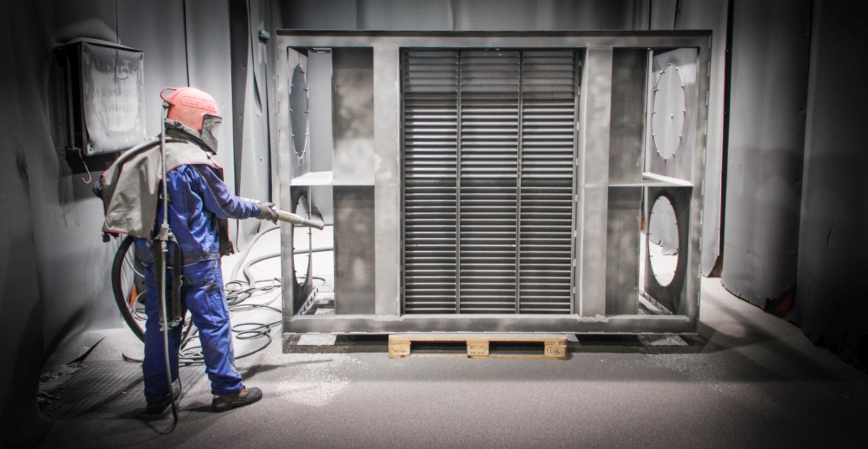 Sandstrahlanlage: 9 x 4,5 x 4,5 m (L x B x H)