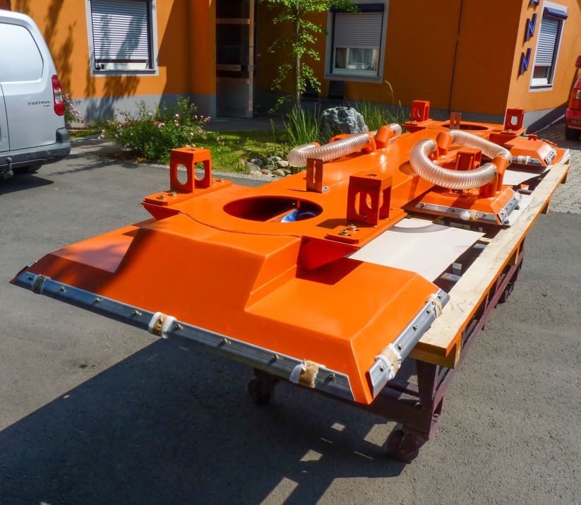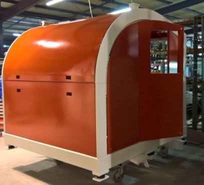 Sandstrahlanlage: 9 x 4,5 x 4,5 m (L x B x H)